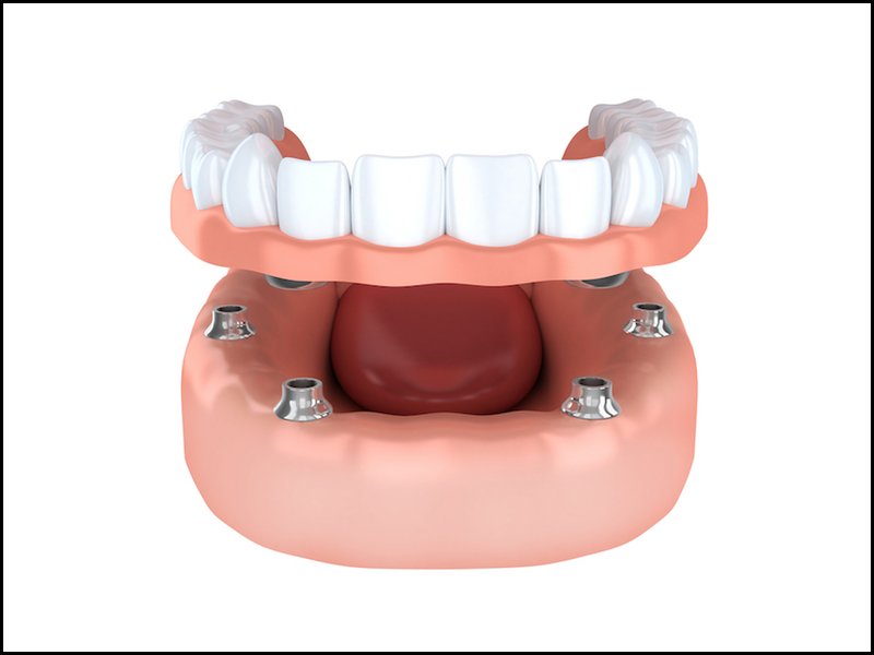 Removable implant-supported dentures fall somewhere between traditional dentures and fixed implant-supported dentures, offering patients many of the benefits of fixed implant-supported dentures, but also some of the drawbacks of traditional dentures. Although they don’t require messy adhesives and they’re securely snapped onto the implants so they never slip or shift, they still feel more like traditional dentures.